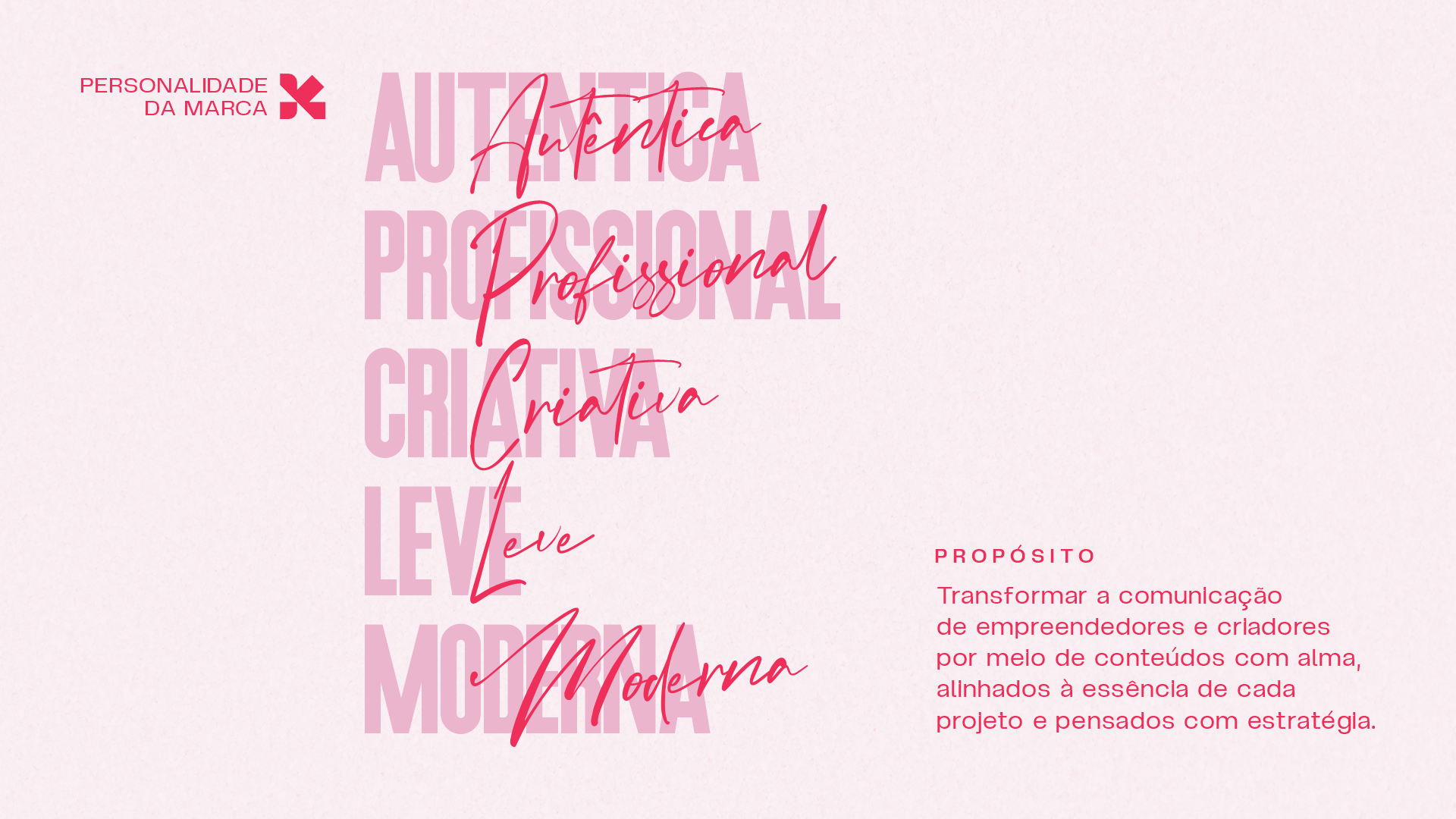 Desenvolvemos uma identidade que reflete sua personalidade criativa, autêntica e moderna, com um posicionamento pensado para aproximar marcas e pessoas através da comunicação.